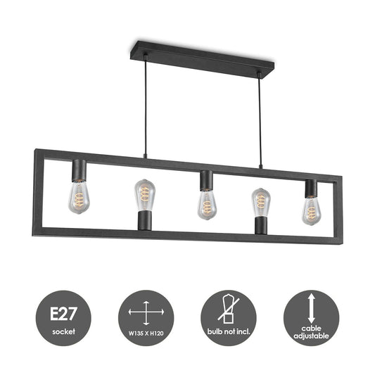UitverkochtHanglamp Preto 5 lichts - Zwart - 135x12x120cm
