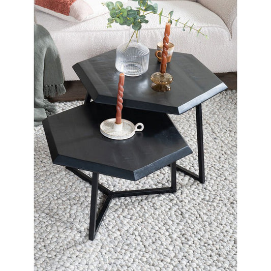 Salontafel Kiara - Set van 2 - Achthoekige tafeltjes - Zwart Mangohout