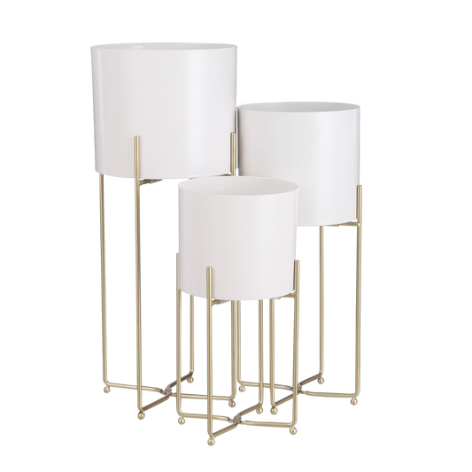 Aries Flower Pot on Stand - Set of 3 - H58 x Ø24 cm - White