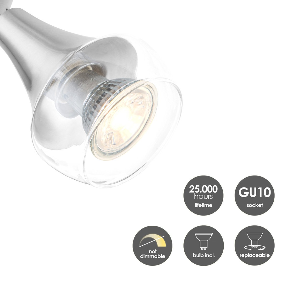 • The surface-mounted spotlight is supplied including a dimmable GU10 LED light source - 5W, 390lm, 3000K - provides warm white light.