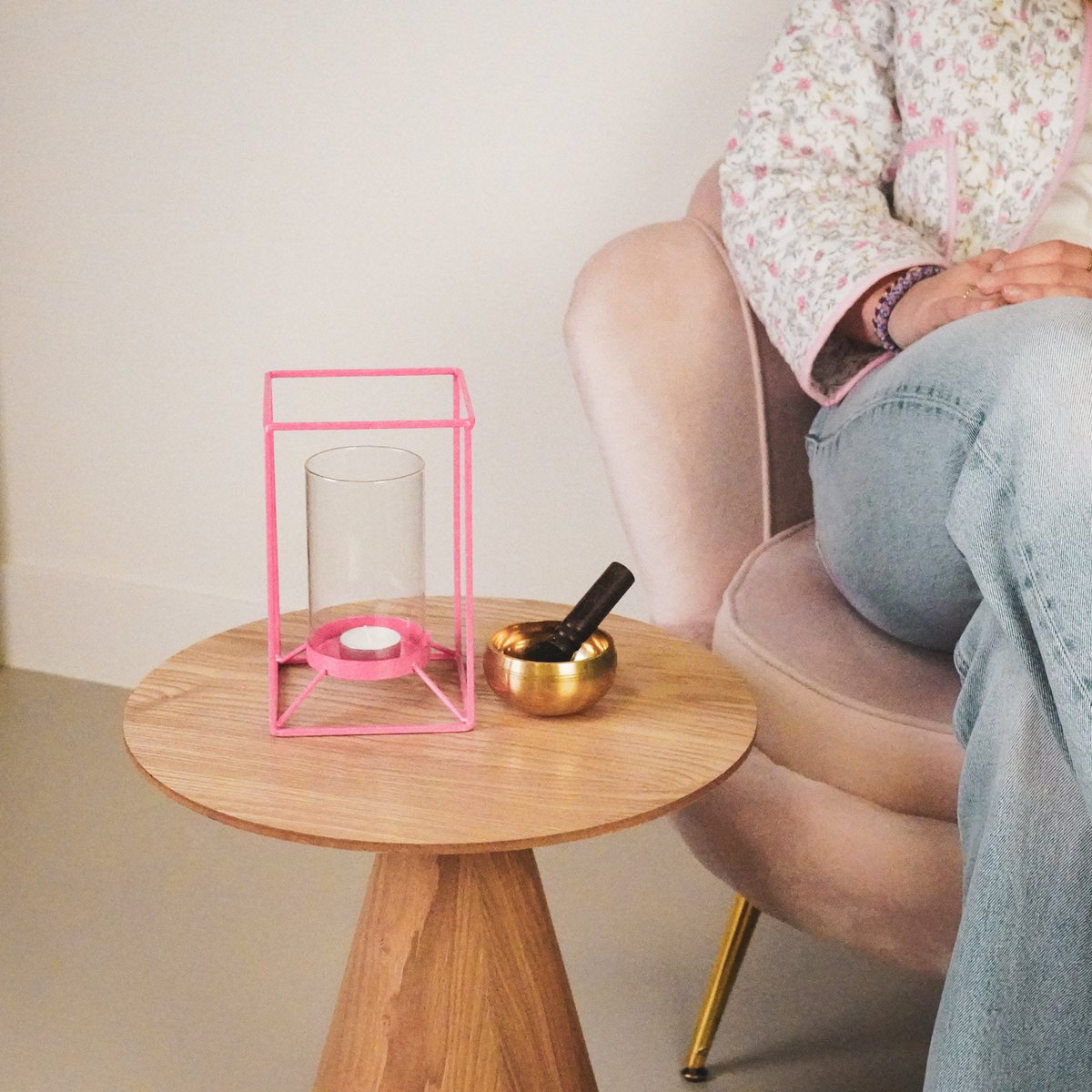 Lantern - Metal/Glass - Pink - 12.5x12.5x20cm