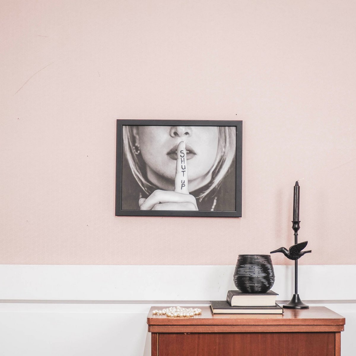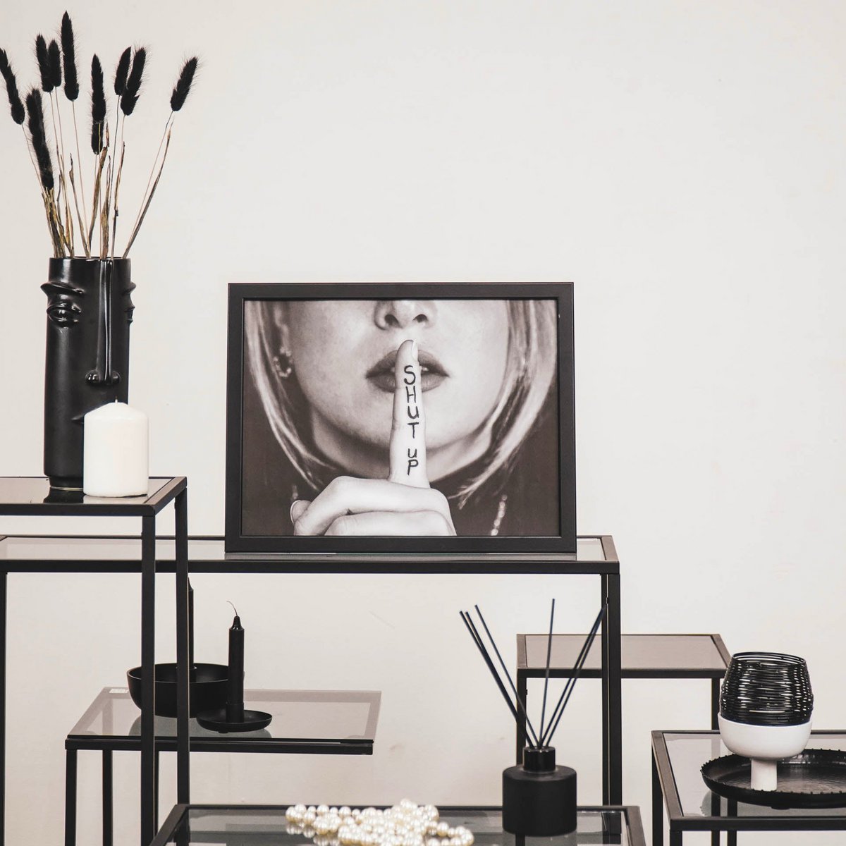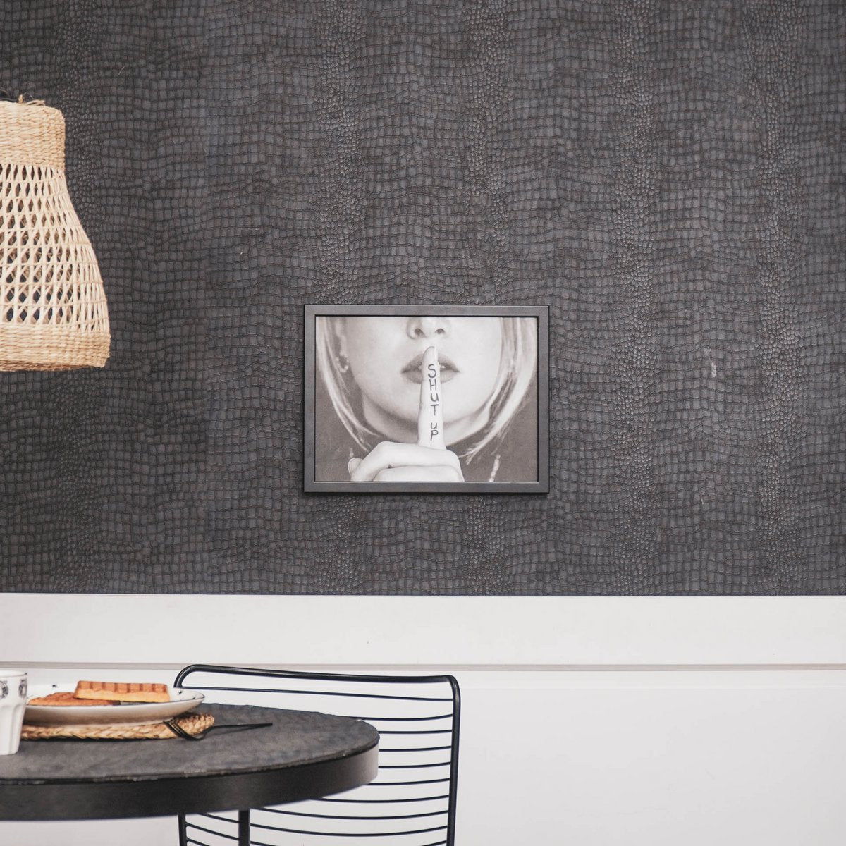 SILENCE STYLISHLY. This modern black and white quote poster from Housevitamin instantly gives any room a trendy and unique look. Perfect for a living room, office, hallway, or bedroom – where will you hang it?