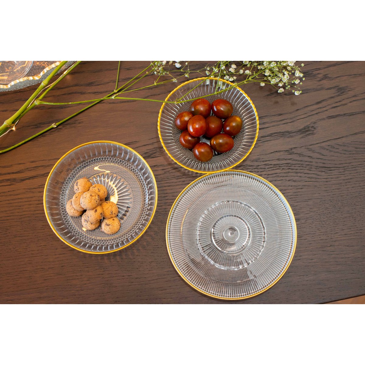 Geef je tafel een vleugje luxe met het Goldline Reags dessertbord van Aulica. Dit elegante glazen bord heeft een subtiele gouden afwerking, waardoor elk dessert – van taart tot verfijnde gebakjes – prachtig tot zijn recht komt. Ideaal voor feestelijke gelegenheden, diners of een stijlvol dagelijks gebruik.