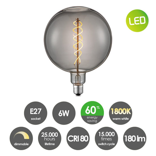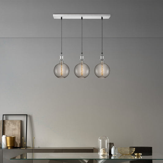 Lampe à suspension chromée vintage LED 3L G180 dimmable E27 fumée