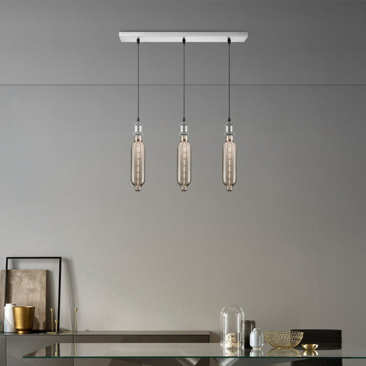 Lampe à suspension chrome vintage Tube 3L G78 dimmable E27 fumée