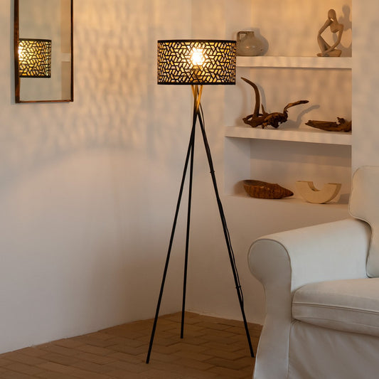 Lampadaire Moderne - Abat-jour noir doré - 53x53x138